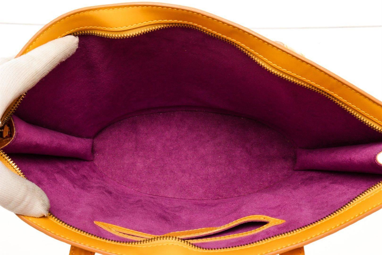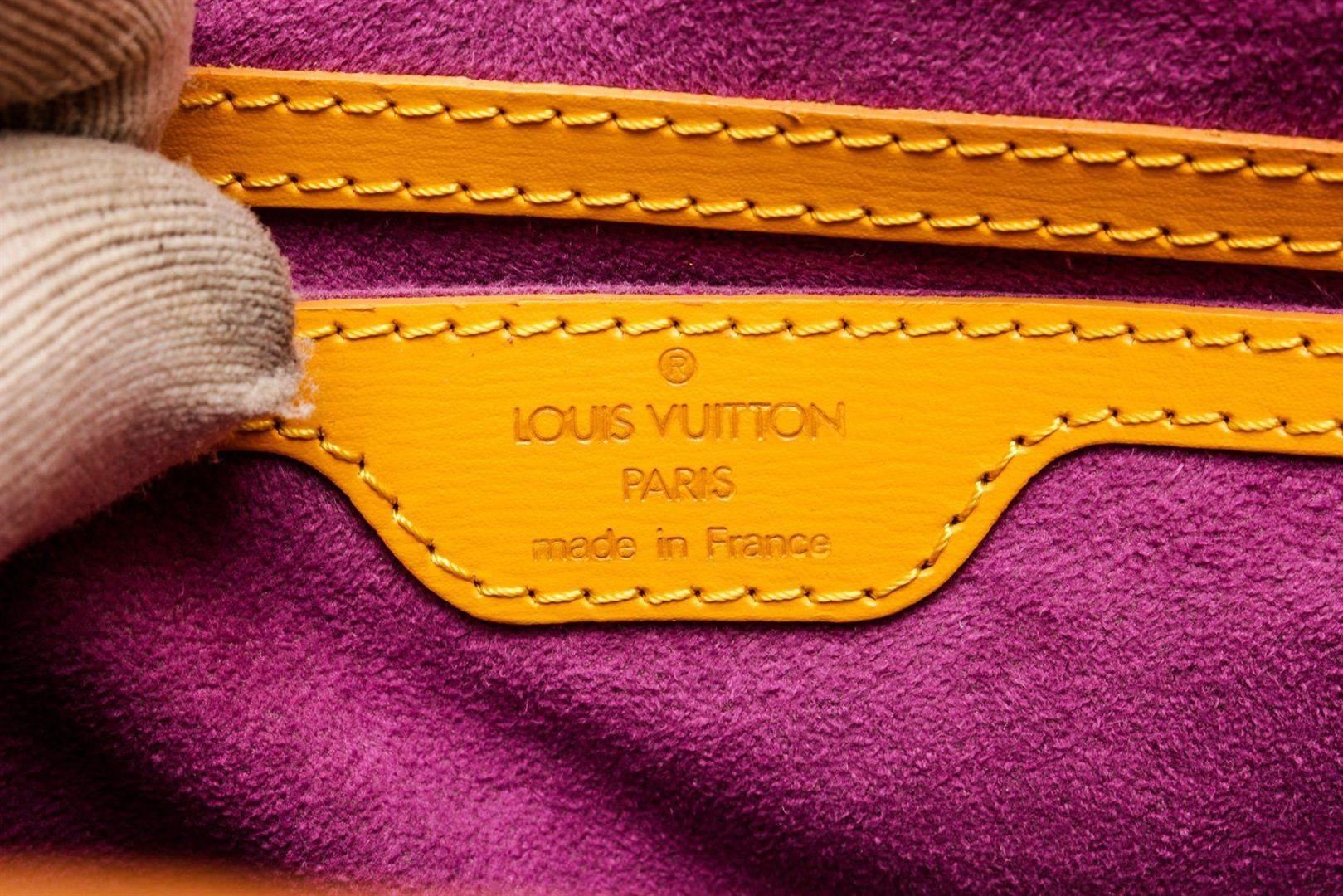 Louis Vuitton Yellow Epi Leather St. Jacques PM Shoulder Bag with epi leather, brass hardware, dual flat shoulder straps, tonal Alcantara lining, single pocket at interior wall and zip closure at top.