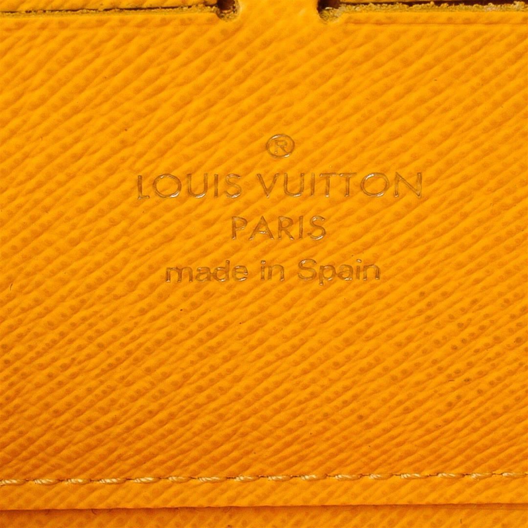 Louis Vuitton Yellow Epi leather Zippy Wallet with gold-tone hardware, trim tan vachetta leather, interior three compartments pocket, leather lining and zipper closure. Measurements: Length: 1 in / 3 cm Width: 7.75 in / 20 cm 4 in / 10 cmCONDITION: Pre-Owned Good overall, please see photographs for detail.