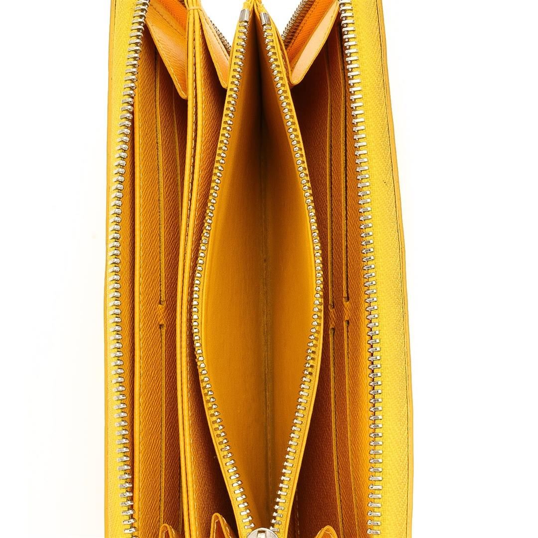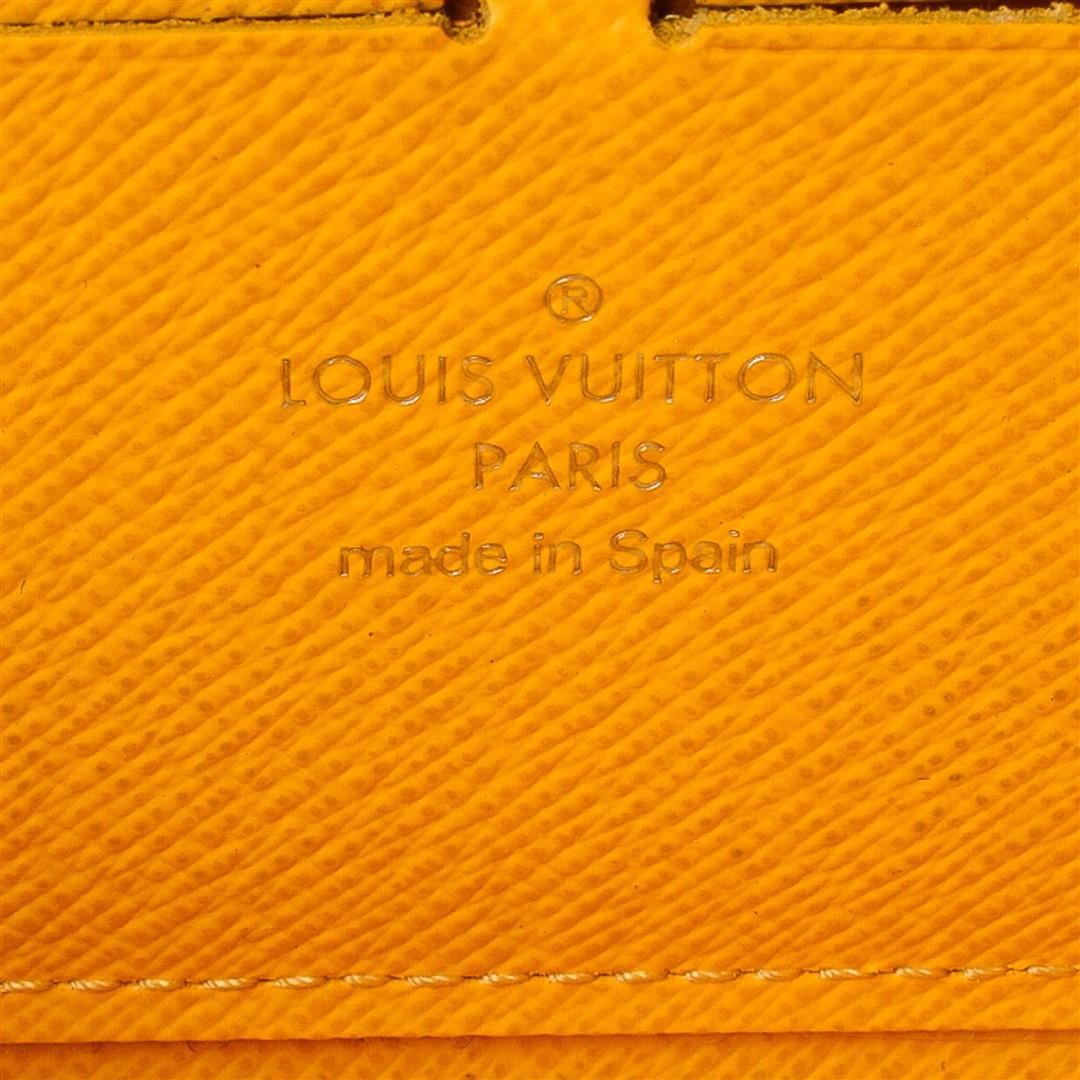 Louis Vuitton Yellow Epi leather Zippy Wallet with silver-tone hardware, interior three compartments pocket, leather lining and zipper closure.