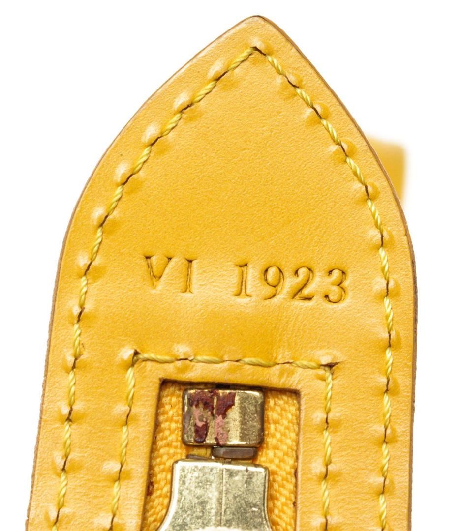 Louis Vuitton Yellow St. Jacques PM Tote Bag with epi leather, gold-tone hardware, interior slip pocket, dual top handles and zipper closure.