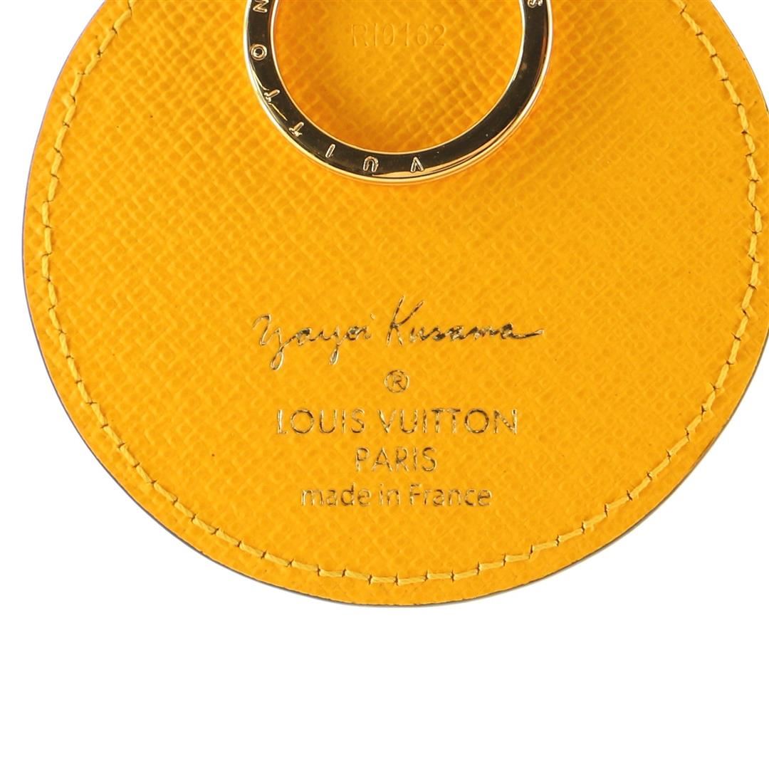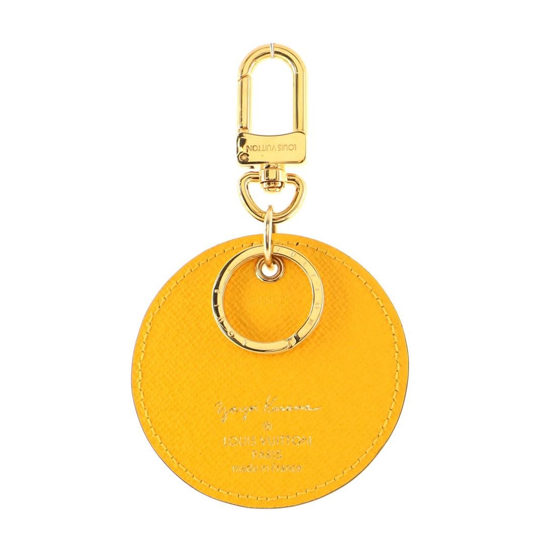 Louis Vuitton Yellow Yayoi Kusama Pumpkin Dots Monogram Limited Edition Round Key Holder features gold-tone hardware with canvas coated leather and yellow pumpkin dots as a signature pattern from artist Yayoi Kusama.
