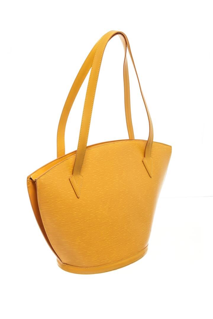 One Louis Vuitton Yellow Ã?pi Leather Saint Jacques Shoulder bag. Item is sold AS-IS. All available information is listed in the description and shown in the photo. Louis Vuitton Yellow ?pi Leather Saint Jacques Shoulder bag with gold-tone hardware, debossed logo to the front, top zip fastening two long top handles, internal logo patch, internal zip pocket, leather lining. Depth 5.9 in, Height 11.8 in, Strap 9.8 in, Width 10.2 in / Depth 15 cm, Height 30 cm, Strap 25 cm, Width 26 cm