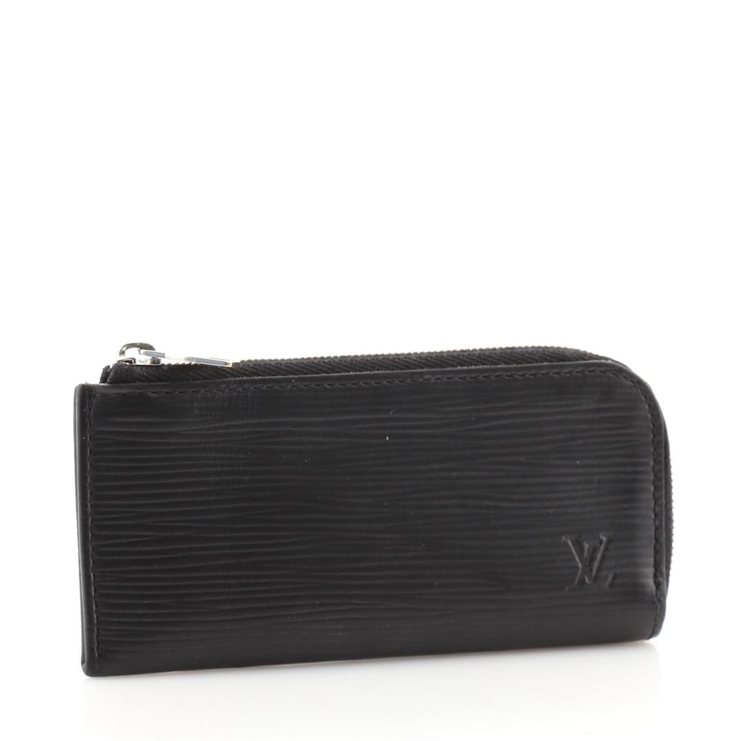 Louis Vuitton Zipped 4 Key Holder Epi Leather Black Epi Leather Condition Details: Minor wear, scuffs and moderate creasing on exterior, light wear in interior, scratches on hardware. eight 2.5", Width 5.5", Depth 0.5", Strap Drop None
