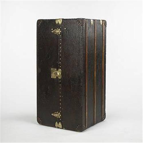 France, 1920s leather over wood, brass, walnut, steel, vinyl 23"w x 23"d x 44"h This trunk was owned by Lillian Gish, a famous movie actress from the 1920s. Two leather labels to interior: [Louis Vuitton Paris] and impressed signature to closures, buck