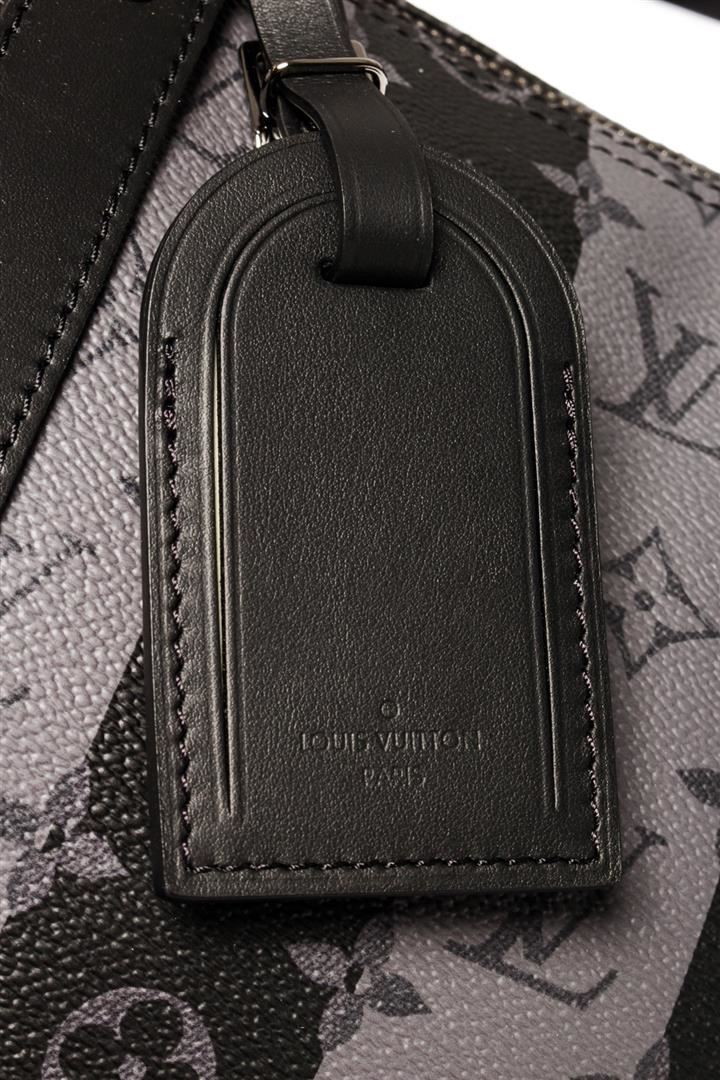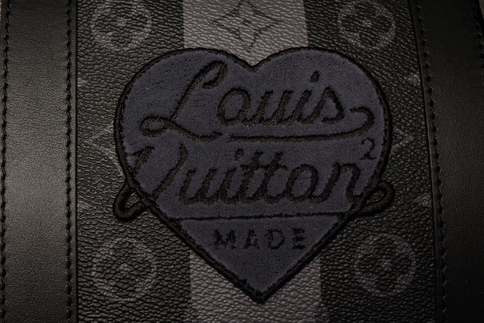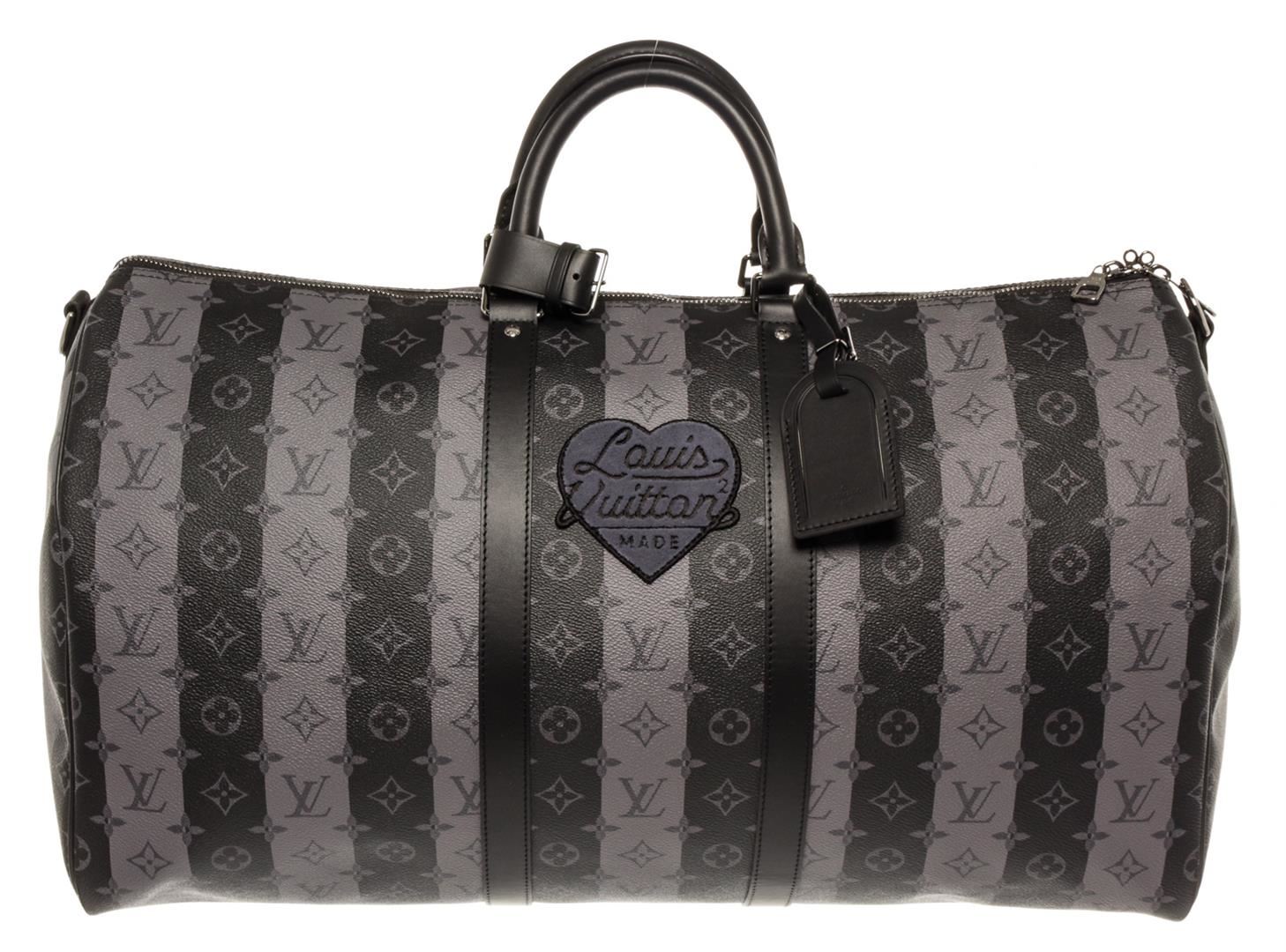 For the NIGO x Louis Vuitton capsule collection, Virgil Abloh and Japanese designer Nigo collaborated on this Keepall Bandouliere 55 travel bag in masculine Monogram Stripes Eclipse canvas. Reworking the Monogram pattern on stripes, Nigo creates a bag tha