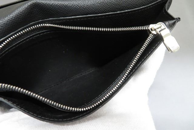 One Louis Vuitton x Supreme Black Epi Leather Brazza Wallet. Item is sold AS-IS. All available information is listed in the description and shown in the photo. Black Epi leather Louis Vuitton x Supreme Brazza wallet with silver-tone hardware, black Taiga leather lining, 16 credit card slots, large zipped compartment for coins and 4 inside flat compartments for bills and tickets. Height: 7.75" Width: 4" Depth: 0.5"