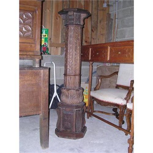 Solid sculpted neo-renaissance oak pedestal from the Nantes region of France. Wonderful gotic- like engraving cover this solid piece.