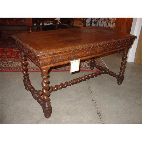 This is a Louis XIII style desk from France with 2 drawers. The wood is European Oak, and it is in excellent condition. Please contact for more pictures. Thank you--Le Louvre