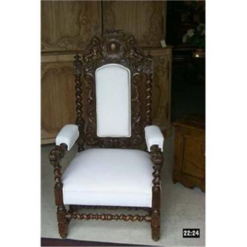 This Louis XIII style chair is made from Oak and is in excellent condition. It has new upholstery on it, but this can easily be changed. Please email for more photos. Dimensions: