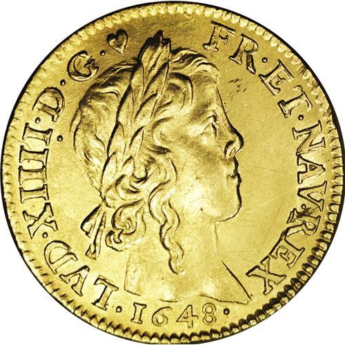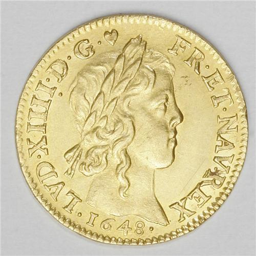 Louis XIIII Gold Louis D''or a la meche longue 1648A, K Louis XIIII gold Louis D'or a la meche longu