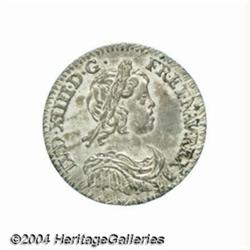Louis XIV 1/12 ecu a la meche courte 1644A, Laureate, draped, and mailed bust right, short hair curl before ear/Crowned shield of France, Gad-111, C-1836, Dup-1464, KM-140.1, lustrous AU with adjustment marks.From the Enterprise Collection. Important notice: Heritage usually auctions material at the rate of 200-250 lots per hour. On some occasions eBay Live bid software or the Internet may not be able to keep up with the pace of the auction. We recommend placing a realistic absentee bid now as insurance to avoid disappointment. Occasionally the auctioneer may eliminate or reject an eBay Live bid, and the auctioneer may also reopen a lot after the close of the eBay live bidding (usually because we missed an audience bid), and may reject your bid even if it shows you as the winning bidder. By bidding via eBay Live, you agree that Heritage may award the lot to another bidder at its sole discretion under the circumstances described above or any other reasonable circumstances. Also please note that all Heritage lots purchased through eBay Live carry a 20% Buyer's Premium. Please make sure you read the Terms and Conditions before you bid.