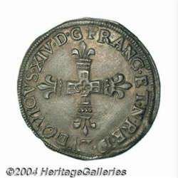 Louis XIV 1/4 ecu de France-Navarre-Bearn 1644B, Outlined cross, fleur-de-lis at ends/Crowned shield of France, Navarre, & Bearn, Gad-138, C-1825, Dup-1459, KM-160.1, XF.From the Enterprise Collection. Important notice: Heritage usually auctions material at the rate of 200-250 lots per hour. On some occasions eBay Live bid software or the Internet may not be able to keep up with the pace of the auction. We recommend placing a realistic absentee bid now as insurance to avoid disappointment. Occasionally the auctioneer may eliminate or reject an eBay Live bid, and the auctioneer may also reopen a lot after the close of the eBay live bidding (usually because we missed an audience bid), and may reject your bid even if it shows you as the winning bidder. By bidding via eBay Live, you agree that Heritage may award the lot to another bidder at its sole discretion under the circumstances described above or any other reasonable circumstances. Also please note that all Heritage lots purchased through eBay Live carry a 20% Buyer's Premium. Please make sure you read the Terms and Conditions before you bid.