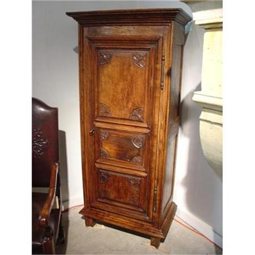 </font></strong>This beautiful Oak bonnetiere (narrow one door armoire) is in very good condition as it was recently refinished. Circa 1890.
