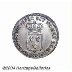 Louis XV 1/6 ecu de France (20 sols) 1720R, Young bust right/Crowned shield of France, Gad-297, C-2110, Dup-1668, KM-454.16, XF.From the Enterprise Collection. Important notice: Heritage usually auctions material at the rate of 200-250 lots per hour. On some occasions eBay Live bid software or the Internet may not be able to keep up with the pace of the auction. We recommend placing a realistic absentee bid now as insurance to avoid disappointment. Occasionally the auctioneer may eliminate or reject an eBay Live bid, and the auctioneer may also reopen a lot after the close of the eBay live bidding (usually because we missed an audience bid), and may reject your bid even if it shows you as the winning bidder. By bidding via eBay Live, you agree that Heritage may award the lot to another bidder at its sole discretion under the circumstances described above or any other reasonable circumstances. Also please note that all Heritage lots purchased through eBay Live carry a 20% Buyer's Premium. Please make sure you read the Terms and Conditions before you bid.