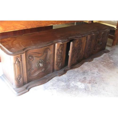 Louis XV buffet top in solid hand carved walnut. May be used as a wall mounted console.</em></td>