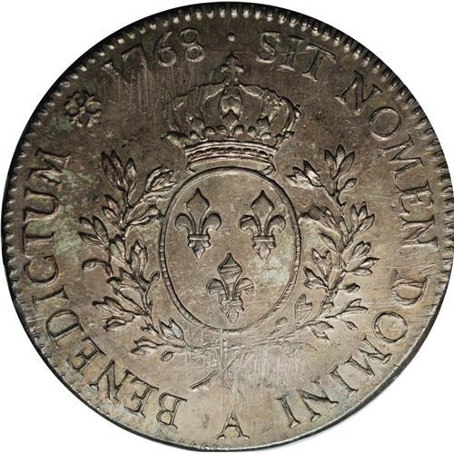 <B>Louis XV Ecu 1768A, </B></I>KM512.1, Davenport 1331, AU-UNC, medium gray and gold toning with reflective, lustrous surfaces. An exceptionally attractive example with very faint adjustment marks, not distracting.<BR><I>From the Monedas Oro Collection</B></I><BR><BR><b>Shipping:</b> Coin/Currency (<a target="_blank" href="http://www.heritageauctions.com/common/shipping.php">view shipping information</a>)