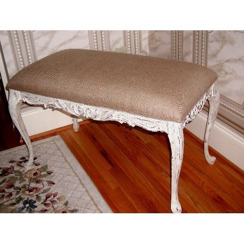 Ornately carved on all sides, cream Louis XV tall bench from France C.1880. Generous size for seating or high enough to be used for a coffee table with a tray on top for cups,etc. Sturdy construction with seat tightly stuffed. Covered in the finest of camel linen burlap for use as is or ready for upholstery. Excellent condition. Measures 36.5L X 18.5W X 22H to top of seat.