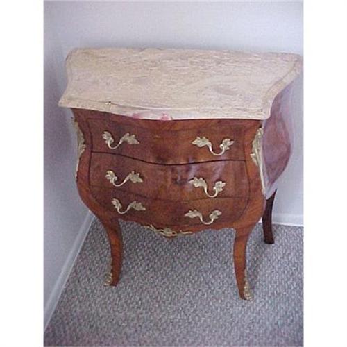 <tr><td>Title: Louis XV Style Bombe Commode With Marble Top</td></tr>