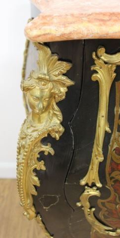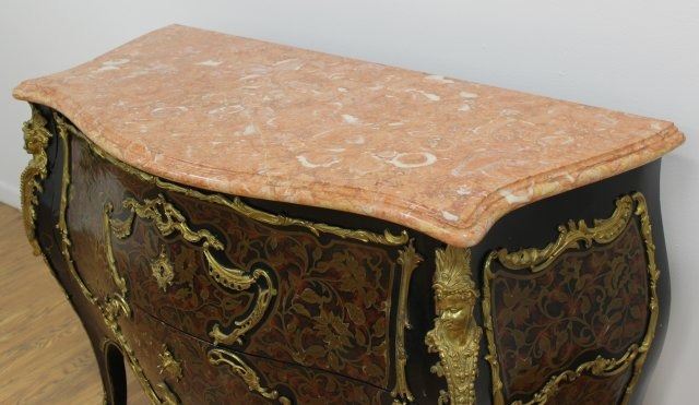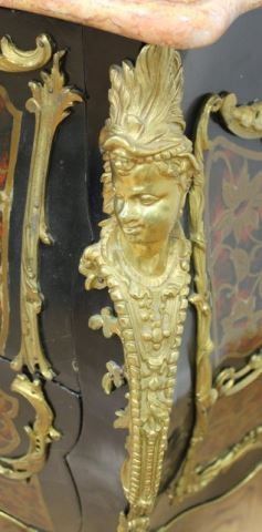 Boulle and black lacquer. Circa 1950. Probably made in Spain. Approx. 33 1/4" H x 47" W x 21" D.