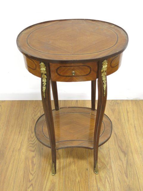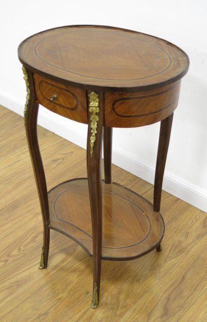 Gilt metal mounts. One drawer. Lower shelf. Approx. 27" H x 17" W.