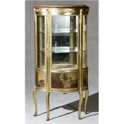 Louis XV Style Vernis Martin Decorated Giltwood Serpentine Vitrine, Early 20th Century, The i...