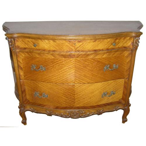 <tr><td>Title:Louis XV Tiger Maple Bombe Commode</td></tr>