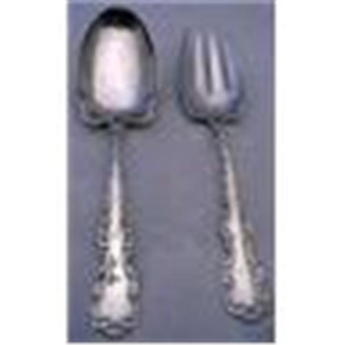 Whiting Pattern Louis XV Sterling Silver at its finest. This antique Salad Set consists of a Serving Spoon and Fork, each measuring 9" long. Louis XV Patterned Silver has always been admired for its highly embossed and quite beautiful handles.