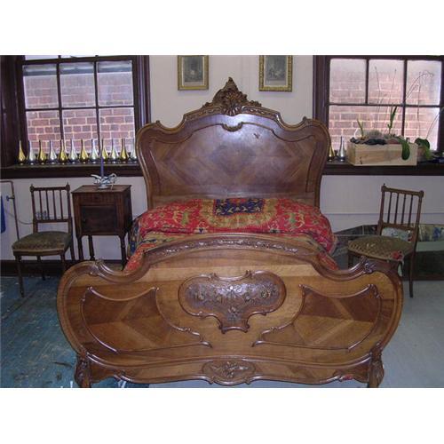 Louis XV bed from the Nantes region of France in walnut. Beautifullt sculpted headboard , footboard and side rails. Fits a full but could easily be tranformed into queen size. There is one small imperfection on the headboard. I would be very happy to send detailed photos .Imported directly from France.