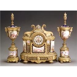 Louis XVI Style Ormolu and SÅvres-Type Three-Piece Clock Garniture