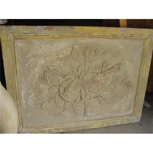 The theme of this plaque is musical with a violin and bow. Encompassing the violin is a ribbon and tassel, surrounded by laurel leaves. This plaque can be used as an overdoor, as was originally done, placed upon a table, or hung on a wall.
