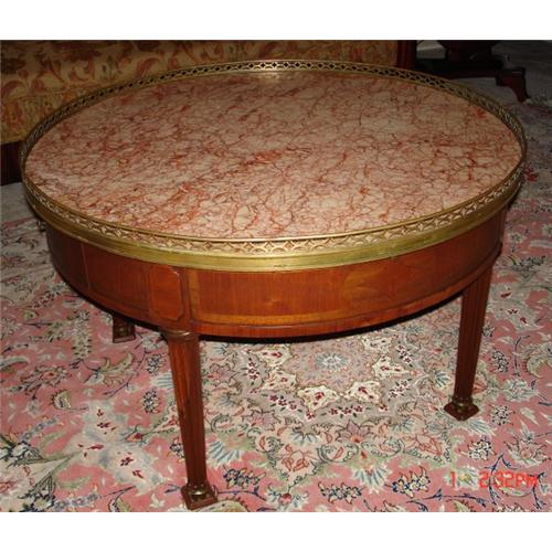 <tr><td>Title: Louis XVI Style Round Marble Top Mahogany</td></tr>