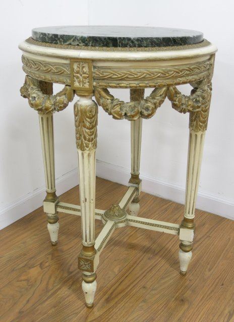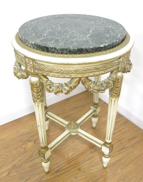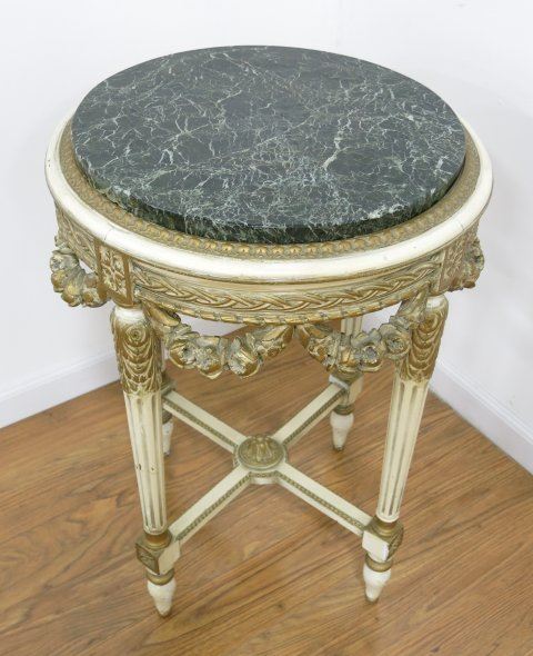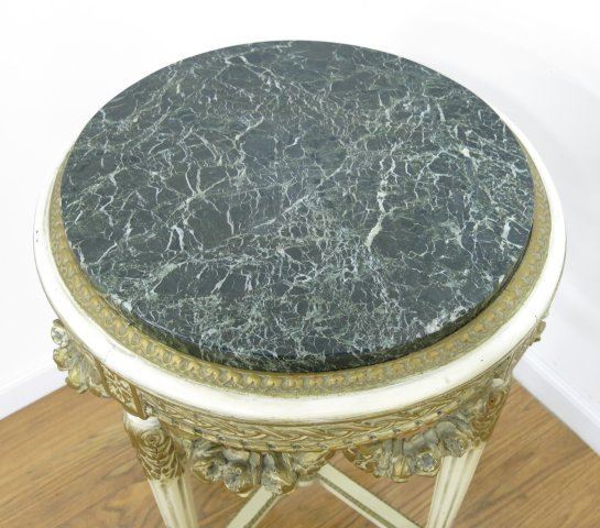 Carved green marble top. Approx. 48" H x 28" W.