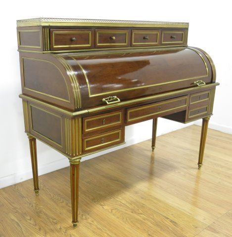 Bronze mounts. Marble top. Brass gallery. Approx. 47" H x 55" W x 23 1/2" D.