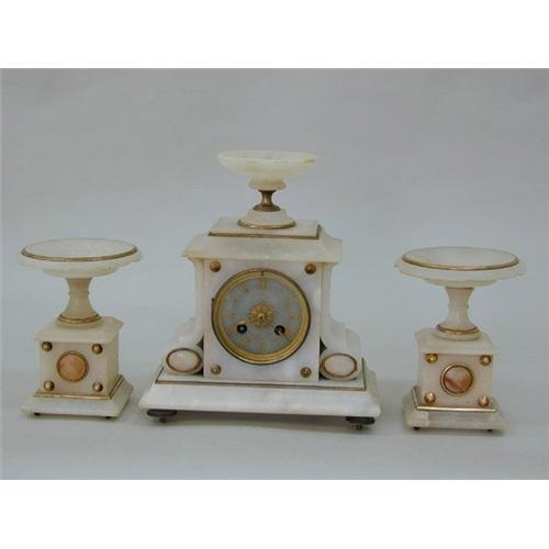<tr><td>Title:Louis XVI style alabaster and gilt bronze clock</td></tr>