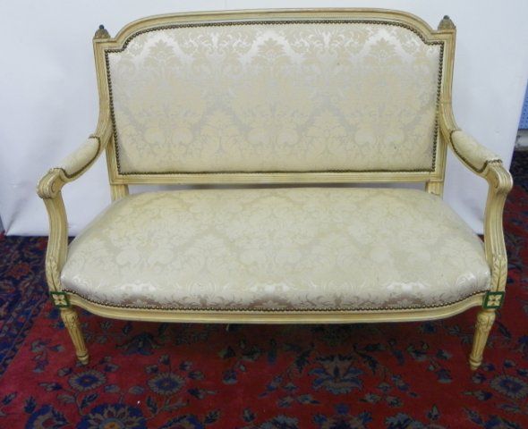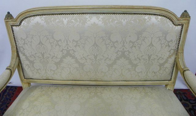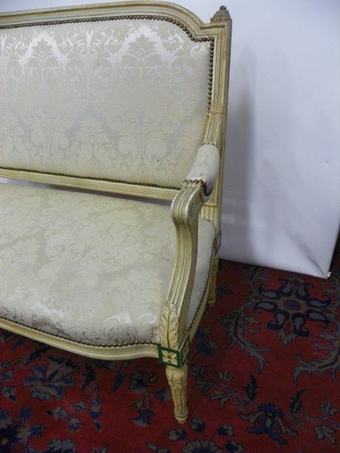 Off white cream upholstery. Approx. 39" H (chair back) x 51" across. Please read our terms of sale.