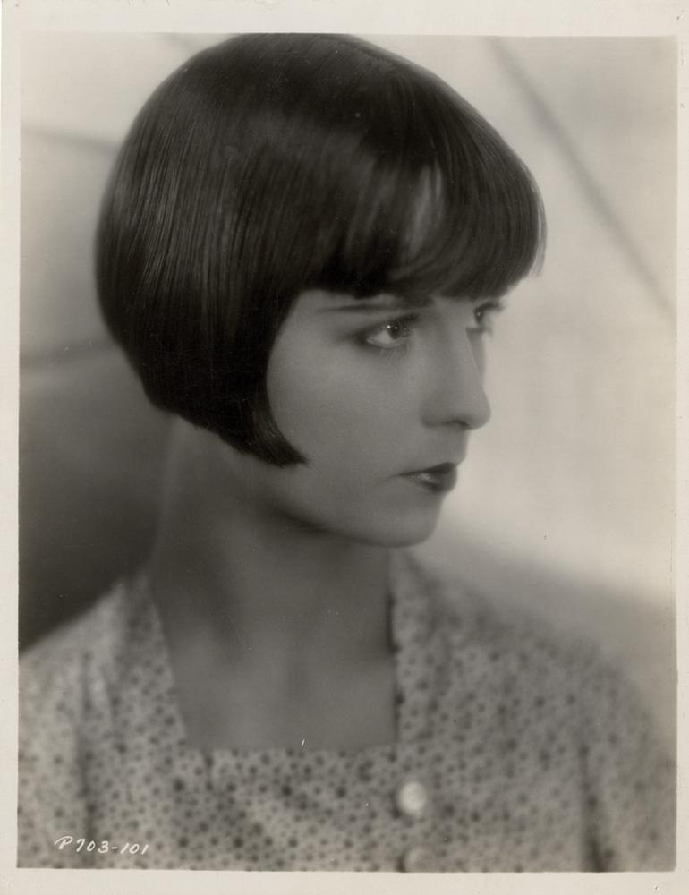 Gelatin silver glossy linen backed 8 x 10 in. key book print of Louise Brooks by Eugene Robert Richee; with portrait number P703-101 in India ink on the negative and Bettmann Archive, Inc. rubber stamp and paper label on the verso. Very fine; with light scuffing at the lower left.