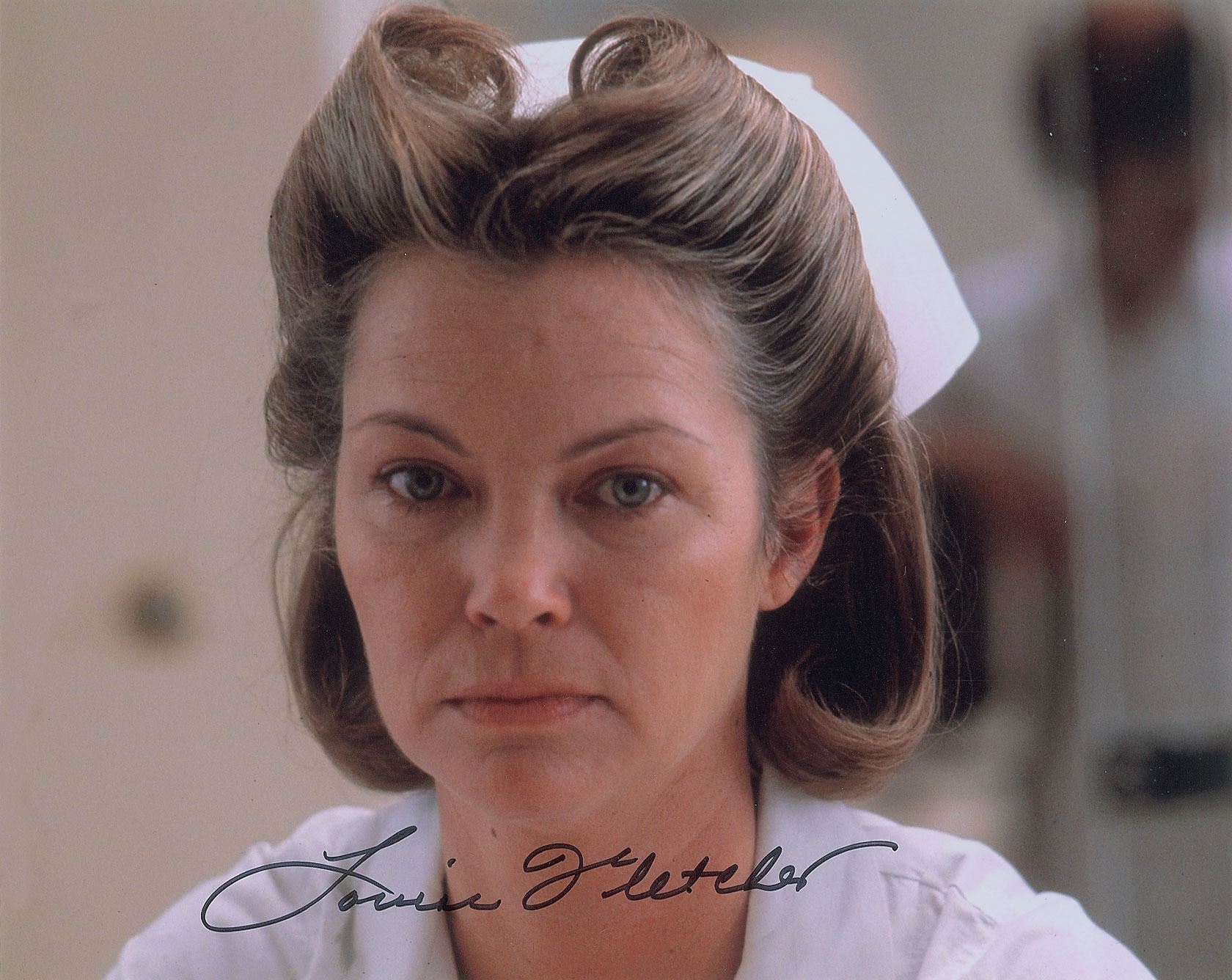 Color satin-finish 10 x 8 photo of Fletcher as Nurse Ratched in One Flew Over the Cuckoo's Nest, signed in black felt tip. In very fine condition.