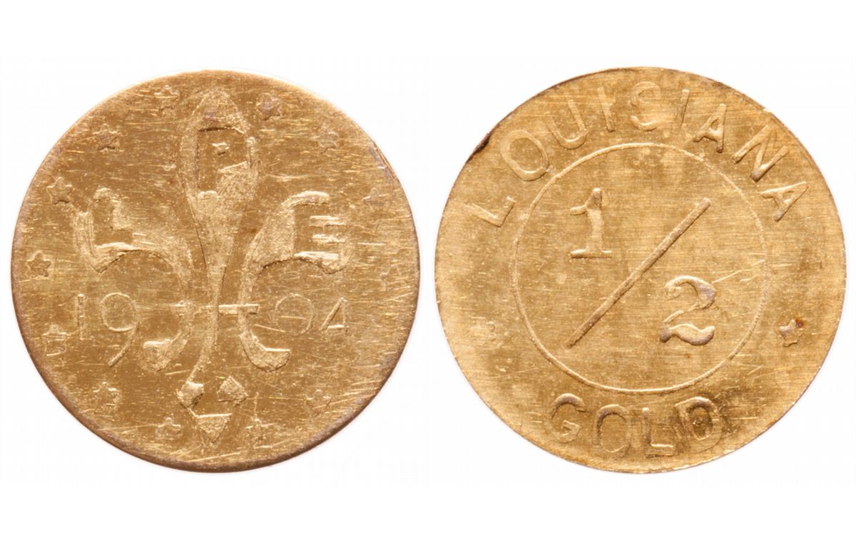 Louisiana Purchase Exposition - St. Louis World's Fair. 1/4 Dollar Gold. 1904. Fleur-de-lis center. 9mm. 1 star. KM-X-TN-1. Unc.