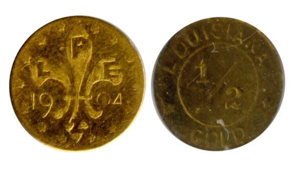 – St. Louis World's Fair. 1/4 dollar gold. 1904. Fleur-de-lis centre. 9mm. 1 star. KM-X-TN-1. Unc.