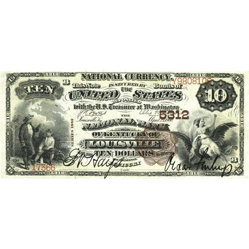 <B>Louisville, KY</B></I> - $10 1882 Brown Back Fr. 490 <B>The NB of Kentucky</B></I> Ch. # 5312<BR>A bright and well centered Brown Back which appears new until closely examined. <B>Extremely Fine+.</B></I>