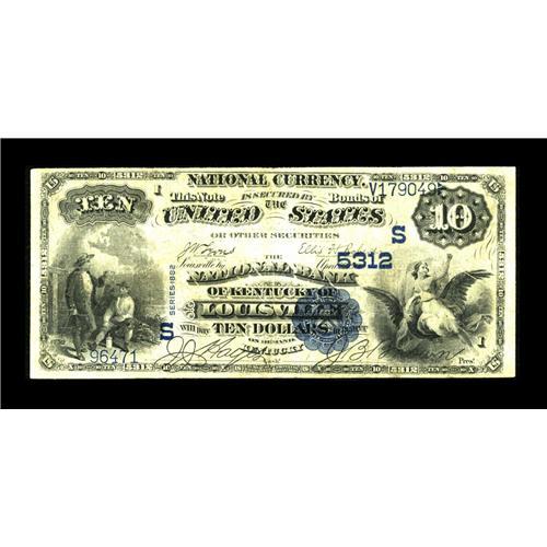 <B>Louisville, KY</B></I> - $10 1882 Value Back Fr. 577 <B>The NB of Kentucky</B></I> Ch. # (S)5312<BR>Just 42 $10 Value Backs are listed for the entire state in the Kelly census. The Louisville example we offer here is a well centered <B>Fine.</B></I><BR><BR><b>Shipping:</b> Coin/Currency (<a target="_blank" href="http://www.heritageauctions.com/common/shipping.php">view shipping information</a>)