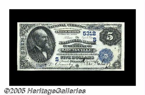 <B>Louisville, KY</B></I> - $5 1882 Date Back Fr. 537 <B>The NB of Kentucky</B></I> Ch. # (S)5312<BR>Fresh and original, but with a few light folds, making this a perfect example for any high grade set of circulated notes. <B>Extremely Fine+.</B></I>