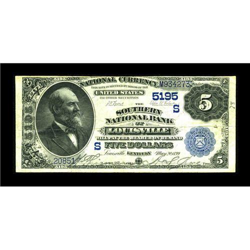 <B>Louisville, KY</B></I> - $5 1882 Date Back Fr. 537 <B>The Southern NB</B></I> Ch. # (S)5195<BR>A still quite crisp <B>Fine+</B></I> $5 Date Back from this important commercial center located on the Ohio River. This scarce bank was in business for not quite 15 years, closing in 1915 after having issued only Second Charter designs.<BR><BR><b>Shipping:</b> Coin/Currency (<a target="_blank" href="http://www.heritageauctions.com/common/shipping.php">view shipping information</a>)