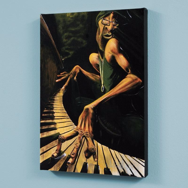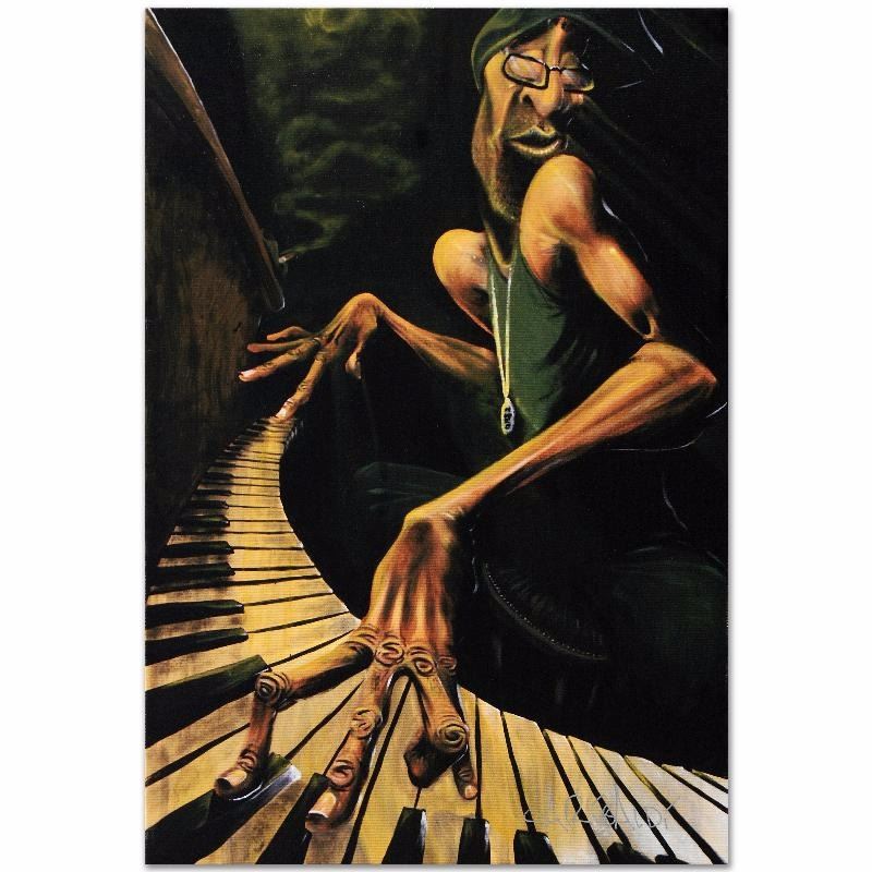 Combining his passions for music and art, David Garibaldi creates visual poetry. "Lounge Smoke" is a limited edition giclee on stretched canvas, AP numbered and bearing the artist's authorized signature. This piece comes gallery wrapped. Includes Certificate of Authenticity! Measures approx. 24" x 36" (image).