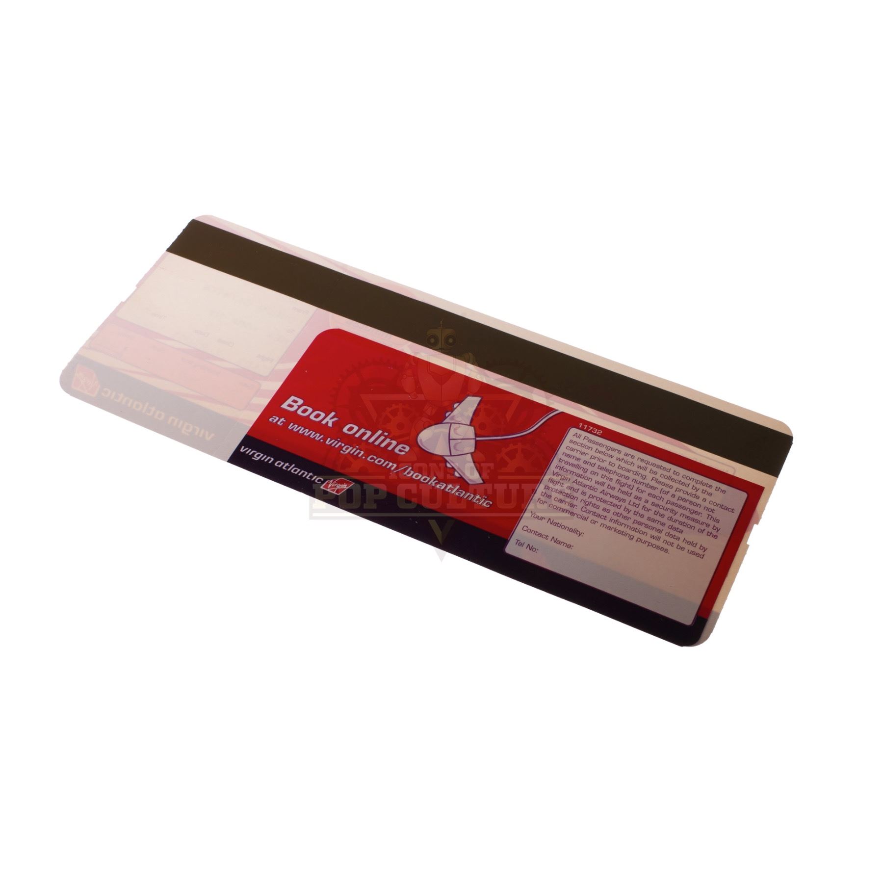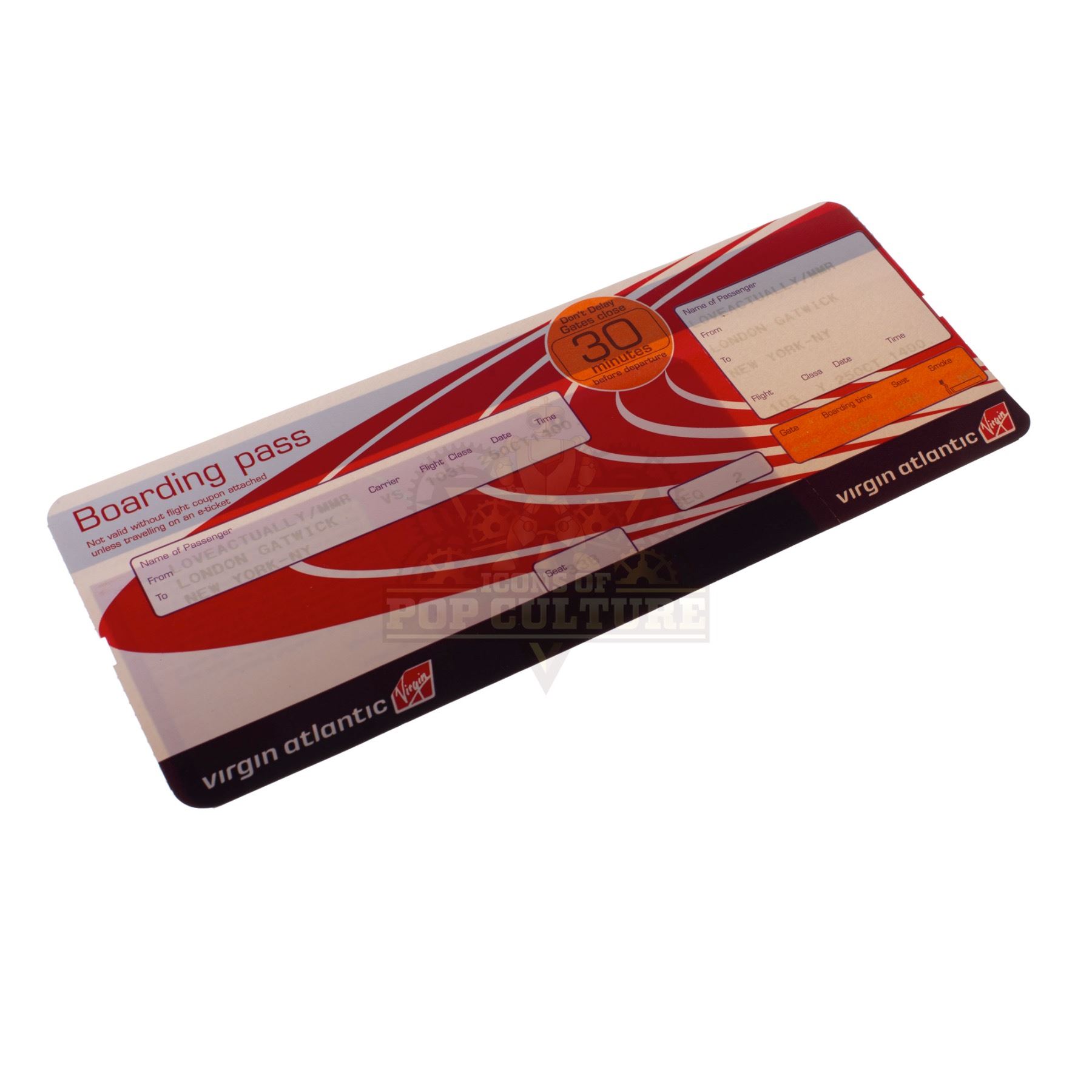 This prop boarding pass was custom-printed by the production for use by various actors and as set dressing during filming. The “Virgin Atlantic” boarding pass measures 8” x 3.25” and lists “Love Actually” as the passenger flying from London, Gatwick to New York, NY.