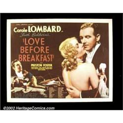 Love Before Breakfast (Universal 1936) Half Sheet (22" X28"). Carole Lombard carved her own niche in cinema history as a screwball comedienne. This stunning half sheet is one of the most beautiful images of Lombard we've ever seen! Near Mint, Rolled.Important notice: We expect to be auctioning lots at the rate of 200-250 per hour. Sometimes eBay Premier live bid software cannot keep up with that pace, so we strongly recommend that you place a realistic proxy bid now as insurance to avoid disappointment. Also please note that all Heritage/CAA lots purchased through eBay Premier carry a 20% Buyer's Premium.