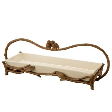 Love Bird Handled Tray In Cream - 7.5"H 21.5"W 8"D - Aluminum & Ceramic