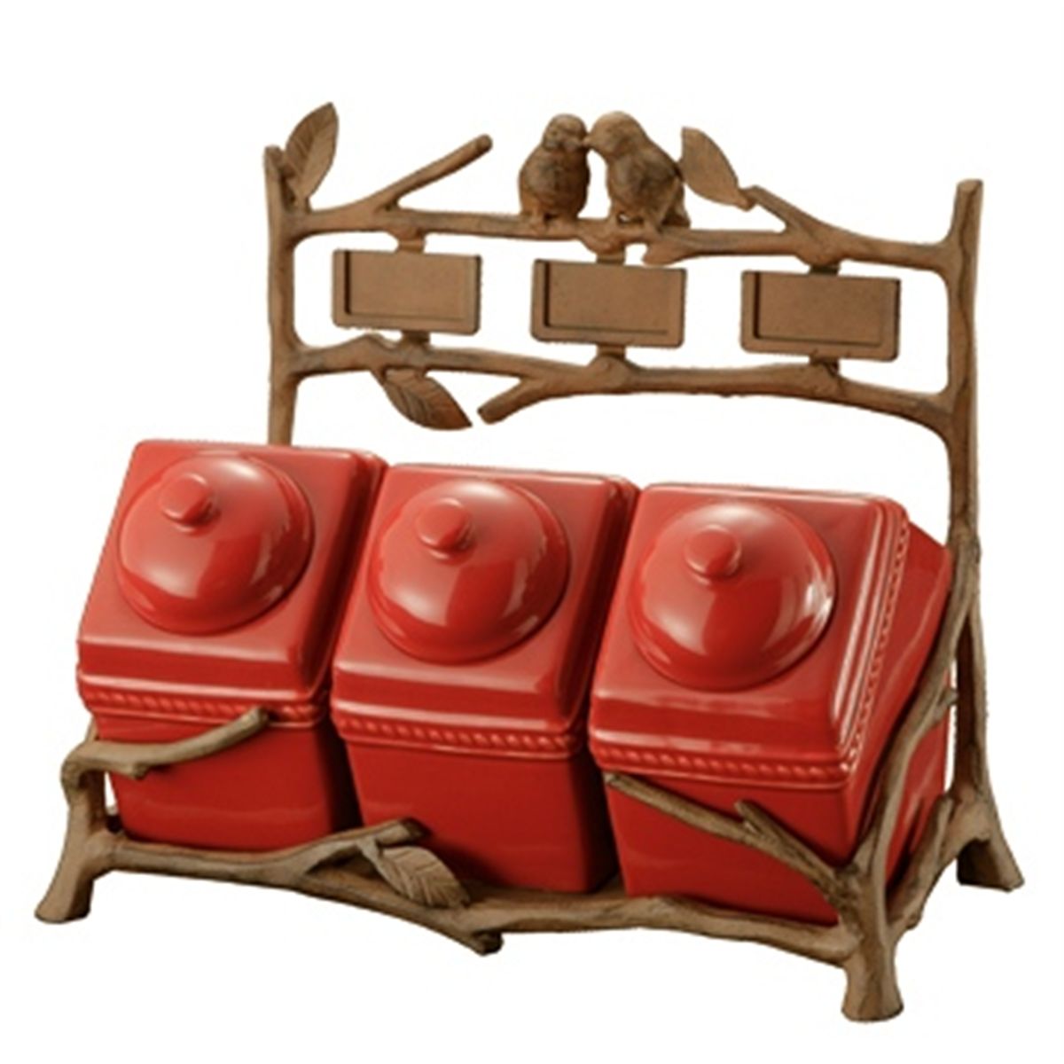 Love Bird Spice Jar Set In Red - 12.5"H 13"W 9"D - Aluminum & Ceramic