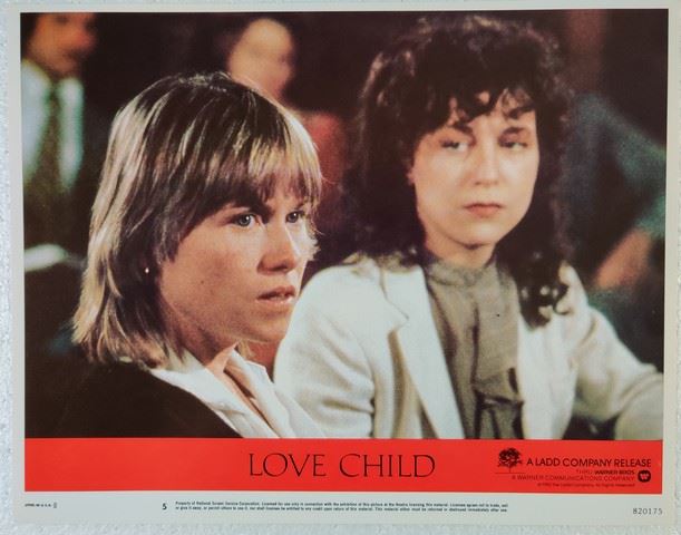Love Child (Ladd Company, 1982) lobby card. Drama, Romance. Starring Amy Madigan, Beau Bridges, Mackenzie Phillips, Albert Salmi, Joanna Merlin, Margaret Whitton, Lewis Smith. Directed by Larry Peerce. Very light edge wear. Near Mint. (11"x14").
