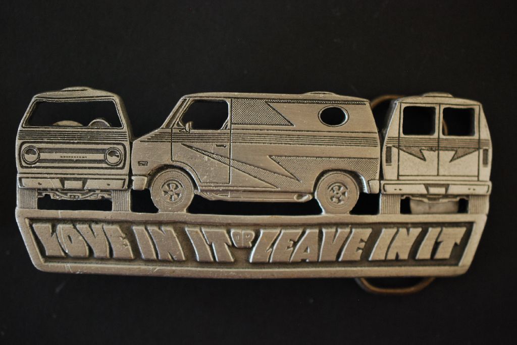 Love In It Or Leave In It Van Belt Buckle; Pure Pewter; EST. $10-30